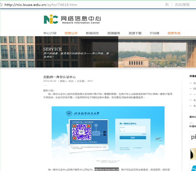 一、进入北航的教务系统,需要首先注册“北航统一身份认证中心”