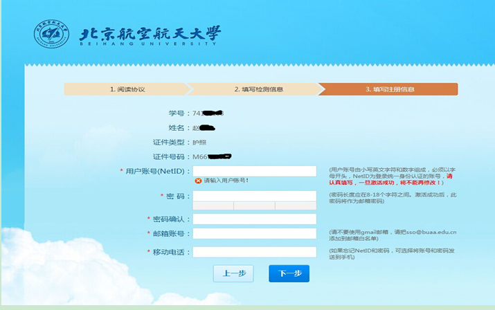 点击下一步按照要求完成注册。